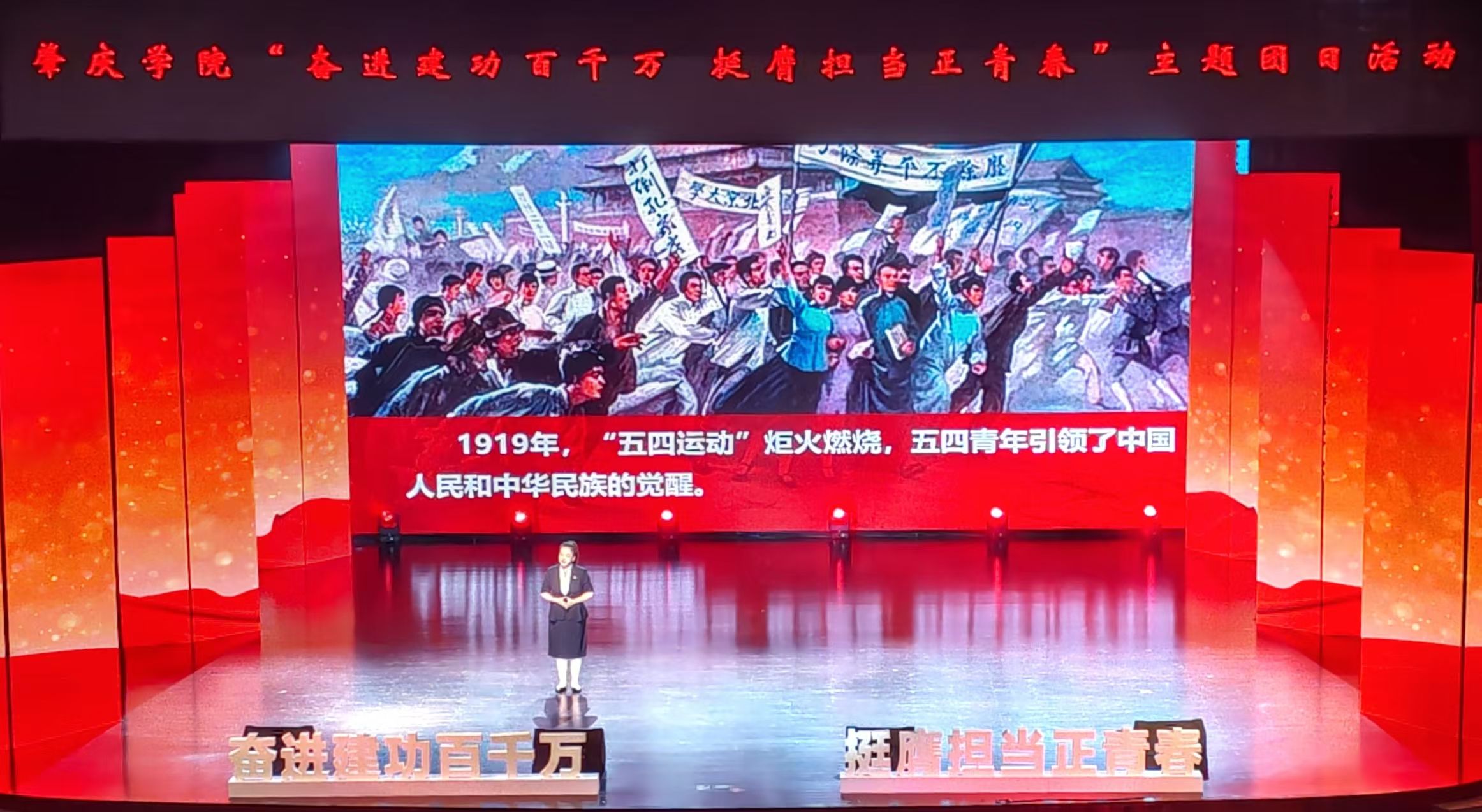 校团委以团支部为基本单元,实现理论学习全覆盖,年均覆盖青年11.5万人次。打造“青言青语”宣讲品牌,邀请专家学者开设精品思政课。依托肇庆本土红色资源,开发《柑路》《忠魂》等系列沉浸式话剧团课,让思政教育“活”起来。组建学生志愿宣讲队开展分众化宣讲,选树青年榜样,引导学子树立远大理想,年均超90名学子携笔从戎、报效祖国。